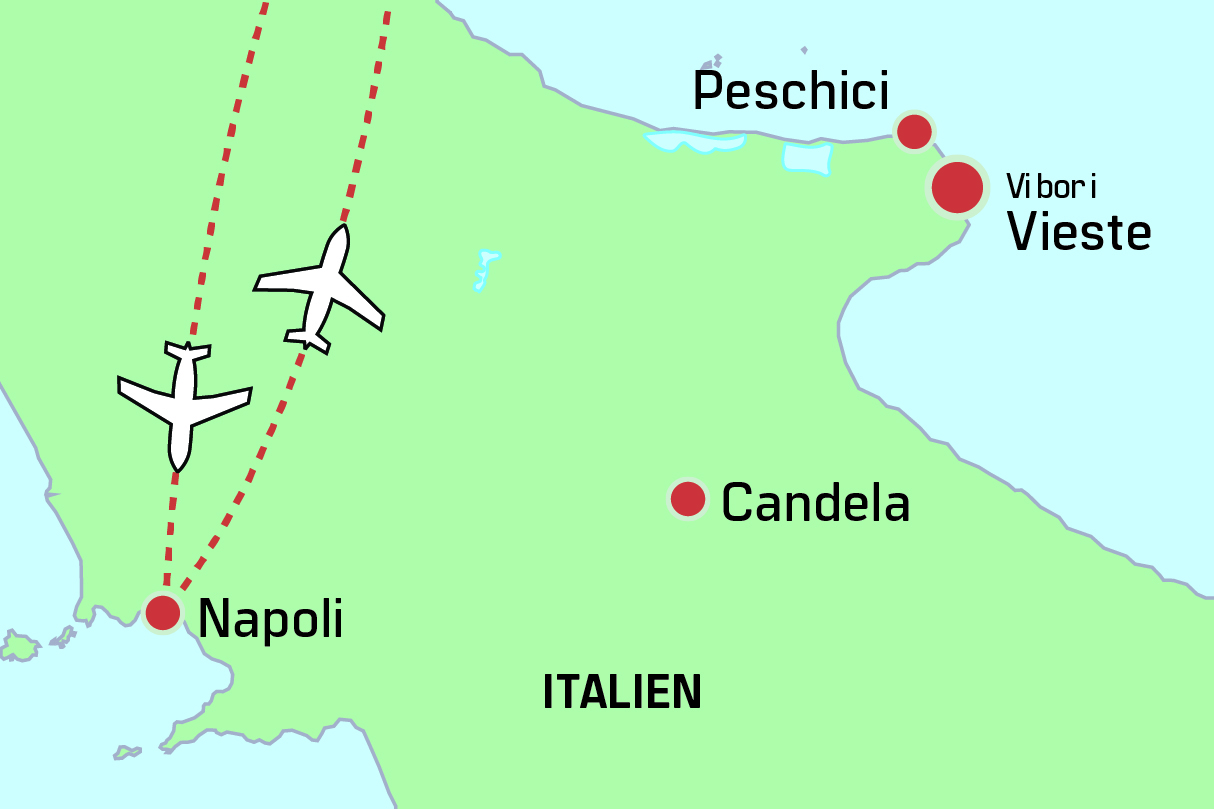 Vieste er med sine gode strande, små piazzaer, snørklede gader og gode restauranter et charmerende bekendtskab. Her mærker vi den ægte italienske stemning, men rejsen byder også på spændende udflugter i området. Vi skal ud at sejle en tur langs kysten med et kig til nogle af de mange grotter, som Garganohalvøen er kendt for, ligesom vi skal have nogle skønne smagsoplevelser i Peschici, der er en anden af områdets maleriske kystbyer.